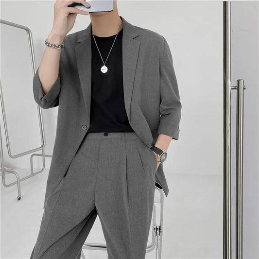 Spring Summer British Style Formal Blazer Men Korean Fashion Loose Casual Dress Jacket Men Harajuku Social Suit Jacket Men M-2XL