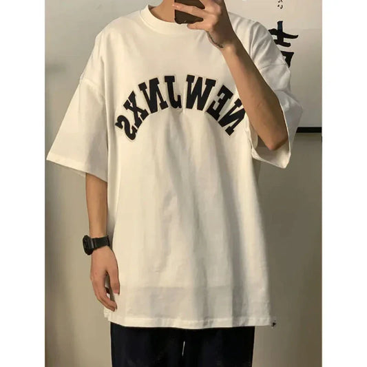 Summer Japanese 100% Cotton Short Sleeve T Shirt Men Heavy Retro Harajuku Letter Print Oversized T Shirt Top Streetwear