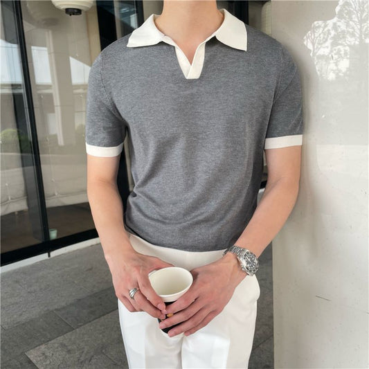 Summer Lapel Breathable Short Sleeve Temperament Men's Clothing Slim Korean Version Solid Color Trend Knitted POLO Shirt