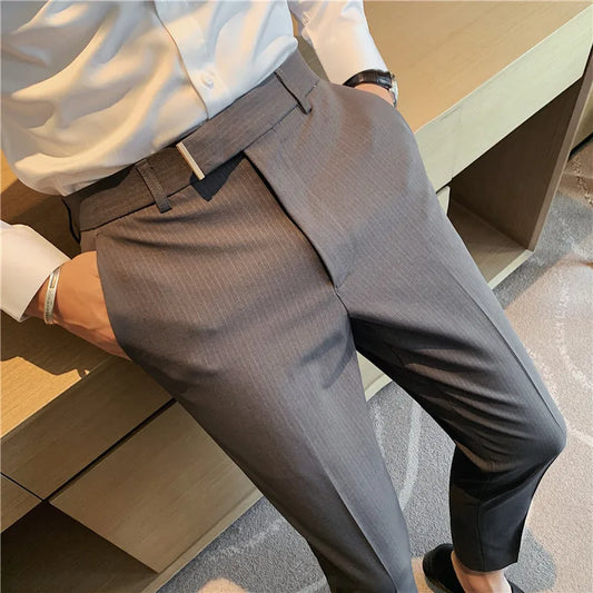 saferido Autumn Casual Business Men Stripe Pants Fashion Slim Fit Long Trouser For Men's Mid Waist Design Pants Spring Streetwear