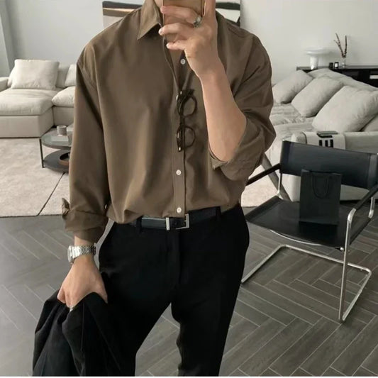 Oversized Casual Jacket Trendy Loose Shirt Men's Long-Sleeved Shirt Spring and Summer Brown TOP