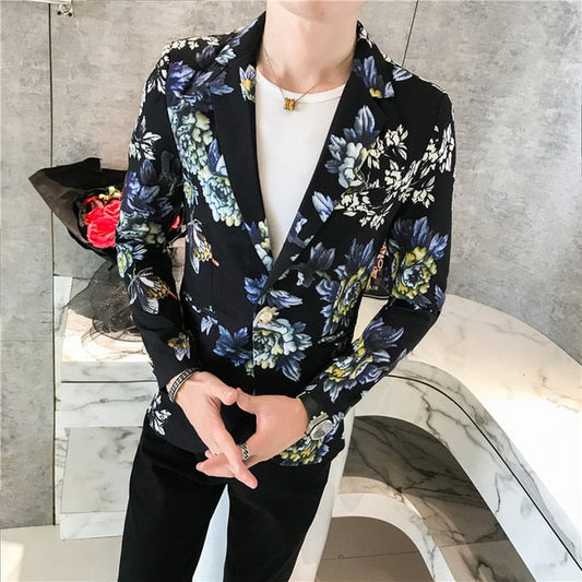 Quality Men's Personality Floral Blazer Men's Terno Masculino Slim Casual Spring Fashion Suit Men's Single Button Blazer