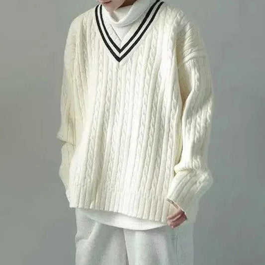 saferido Mens College Style Knitted Sweater 2024 Spring New Genderless Fashion Temperament Retro Loose All-Match Knitted Sweater Unisex