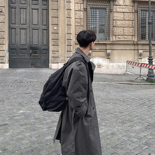 saferido mens fall fashion Mid-Length Windbreaker Men's Spring and Autumn New Korean Style Trendy Handsome Loose Double-Breasted Coat over the Knee