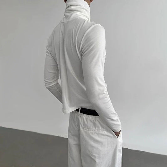saferido Mens Casual Slim Shirt 2024 Spring New Genderless Fashion Shaping Solid Color High Collar Harajuku Bottoming T-Shirt Unisex