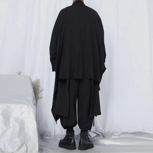 saferido Shirt Men Spring New Long Sleeve Fashion Hrajuku Gothic Irregular Handsome Loose Oversize Turn-down Collar Stylish Clothing