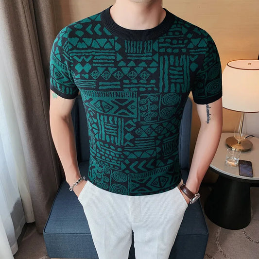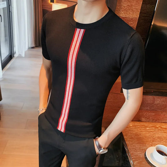 saferido British style Men's Spring Summer Casual Short Sleeve Sweater/Male Slim Fit O-Neck Fashion Knitted Shirt Plus Size S-4XL