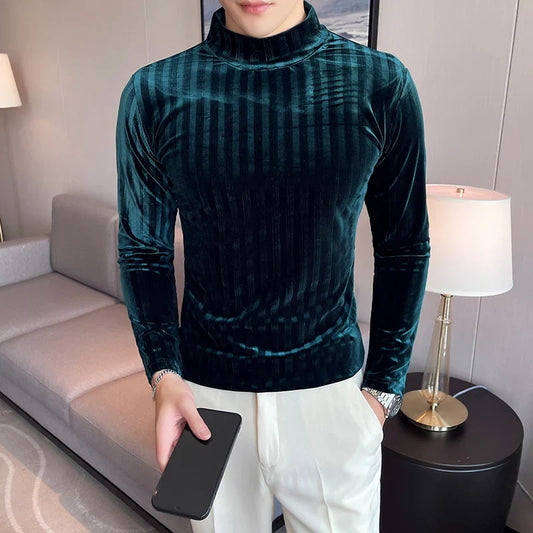 saferido Brand Clothing Men Spring High Quality Slim Long Sleeve T-shirt/Male High Collar Warm Striped Bottom Shirt Fashion T-shirts