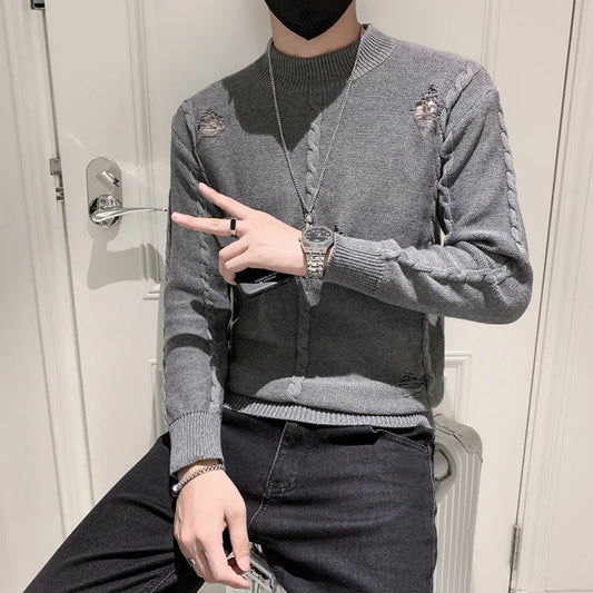 saferido Clothing Men Spring High Quality Casual Knit Sweaters/Male Slim Fit Hole Decoration Pullover Man Sweaters Size S-3XL