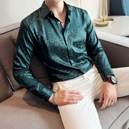 saferido British Style Men's Spring High Quality Business Dress Shirts/KMale Slim Fit printing Long Sleeve Shirts Plus Size S-3XL