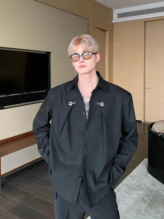 saferido Spring Autumn Fashion Korean Spring Long Sleeve Men Shirt Loose Casual Black White Solid Color Turn-down Collar Simple