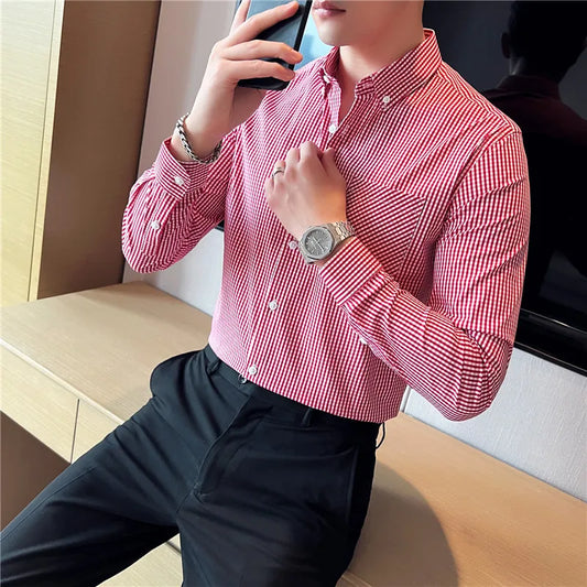saferido Men Spring High Quality Business Long Sleeve Shirts/Male Slim Fit Fashion Plaid Office Dress Shirts Plus Size S-4XL