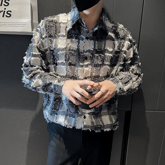 saferido ClothingMen's Spring High Quality Long Sleeve Shirts/Male Loose Plaid Lapel Casual Club Shirts M-2XL