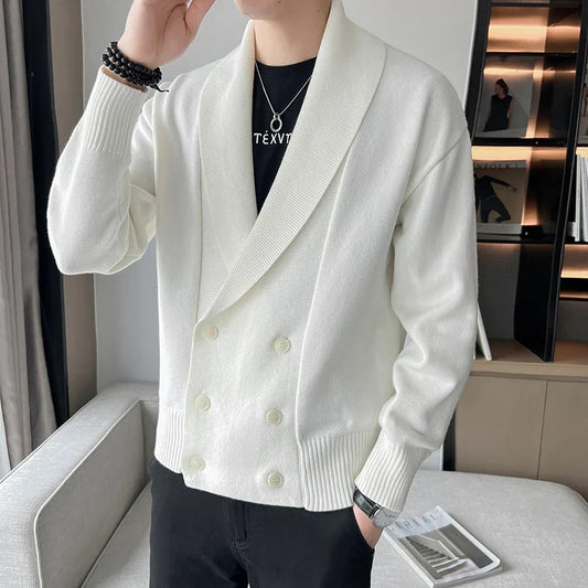saferido Double-Breasted Cardigan Sweater Men Spring Clothes Knitted Sweater Coat Pure Color Men Casual New Slim Fit Brand Clothes