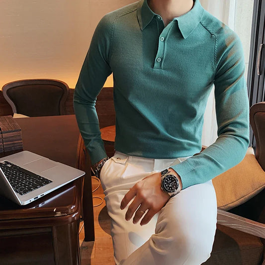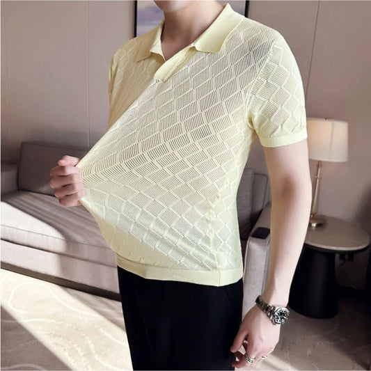 saferido Male Spring Slim Fit Knitting Polo Shirts British Style Men's Summer Casual Hollow Out Short Sleeves Polo Shirts S-3XL