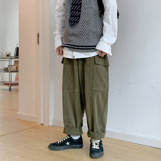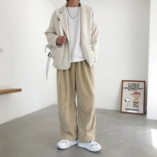 saferido Men's Corduroy Solid Color Casual Pants Retro Loose Wide Legs Pants Streetwear Hip Hop Trousers Fashion Oversized Sweatpants