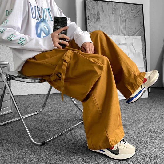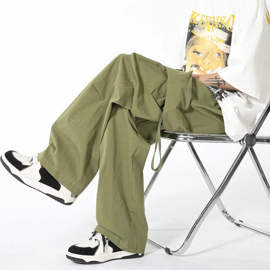 saferido Men's Loose Casual Cargo Pants Neutral Streetwear Oversized Straight-leg Trousers Elastic Waist Jogger Sweatpants M-2XL