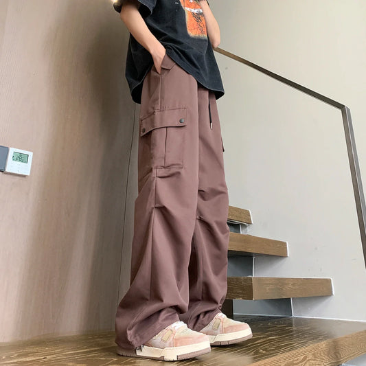 saferido Men Y2k Solid Cargo Pant Early Spring Korean Straight Oversize Casual Wide-Leg Trousers Streetwear Male Big Pockets Sweatpants