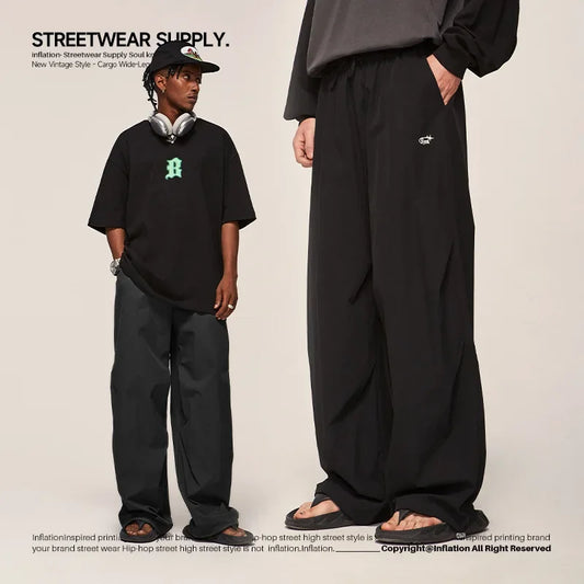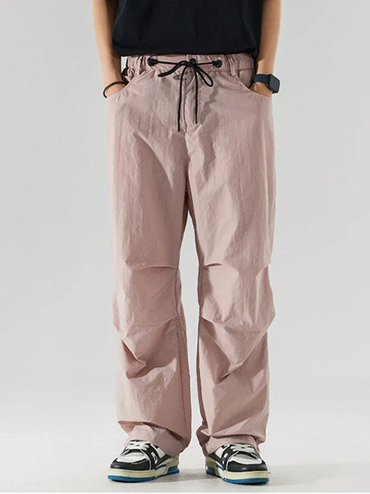 saferido Parachute Sports Pants Men Ice Silk Jogging Sweatpants Wide Leg Trousers Male Streetwear Loose Casual American Street