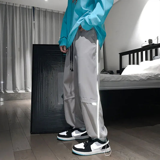 saferido Reflective Striped Sweatpants Men's Spring Autumn Oversize Beam Feet Solid Stitching Casual Pants Sports Trend Classic Trousers