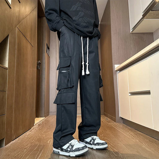 saferido Spring New Cargo Pants Men's Loose Straight Oversize Clothing Men's Baggy Sweatpants Multi-Pockets Jogger Trousers 5XL