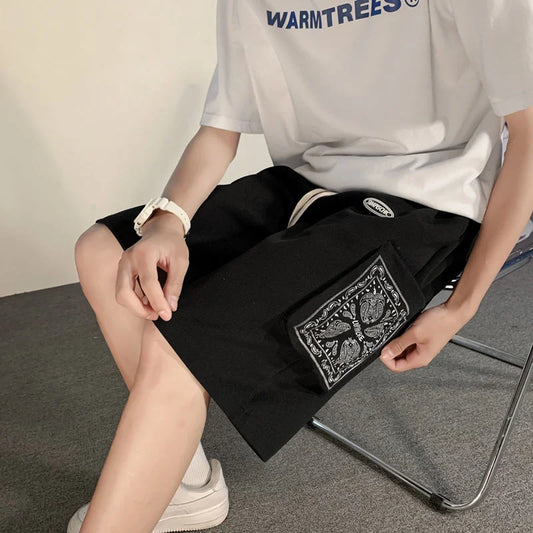 saferido Printed Big Pocket Casual Shorts for Men's Oversize Sports Straight Wide Leg Pants Loose Trend Five Points Sweatpants Summer