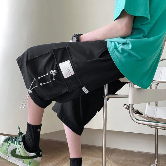 saferido Solid Color Loose Shorts Summer Big Pocket Sports Straight Wide Leg Casual Pants Oversize Fashion Thin 5-points Sweatpants Men