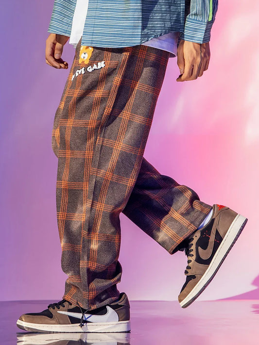saferido Sweatpants Plaid pants men's national fashion large men's elastic pants add fat men's pants fashion fat man spring pants men's pants