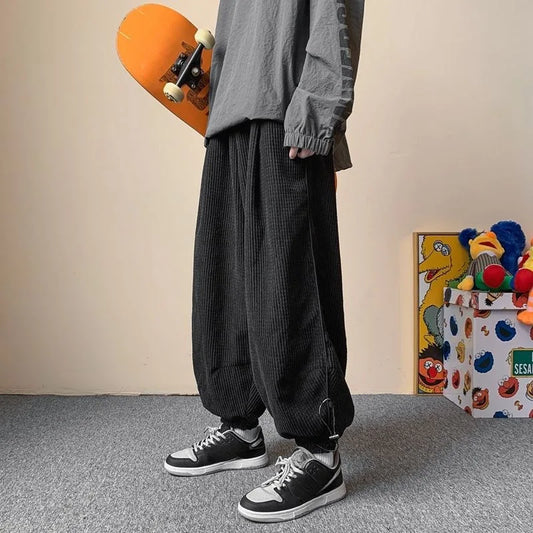 saferido Winter Japanese Retro Wide Leg Pants for Men Corduroy Haren Pants Oversized Casual Jogging Sweatpants Hip-hop Street Male