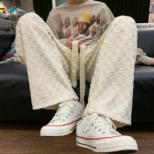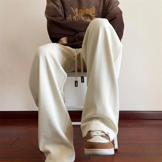 saferido Straight Wide Leg Knitted Sweatpants Men's Spring Autumn Solid Color Plaid Casual Pants Sports Trend Classic All-match Trousers