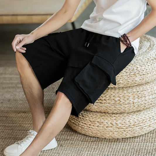 saferido Trend Summer Beach Five-point Pants Oversize Stitching Pocket Casual Shorts Men Loose Straight Sports Sweatpants Thin Outer Wear