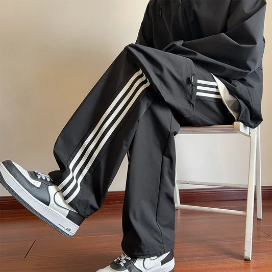 saferido Trousers Summer Men's Sweatpants Thin Striped Straight Male Sports Pants Wide Leg Big Size Korean Y2k Fashion 2024 Casual Long