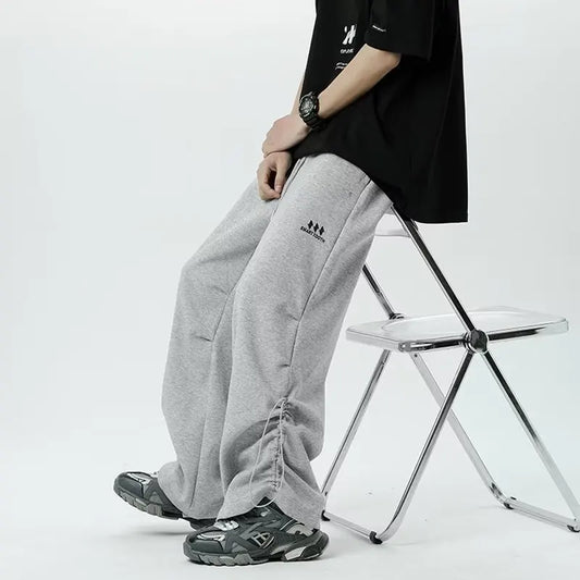 saferido Wide Leg Goth Draped Summer Male Sports Pants Trousers Thin Plain Straight Men's Sweatpants Training Slacks Harajuku Flated Gym