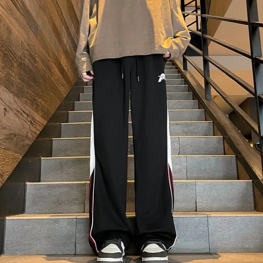 saferido Sweatpants for Men Stripe Trousers Straight Male Sweat Pants Wide Leg Baggy Vintage Tracksuit Bottoms Stylish Harajuku Fashion