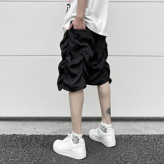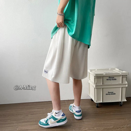 saferido Fashion Summer Casual Men's Pleated Shorts Vibe Solid Color Short Sweatpants Jogging Hip Hop Oversize Shorts Male Clothes