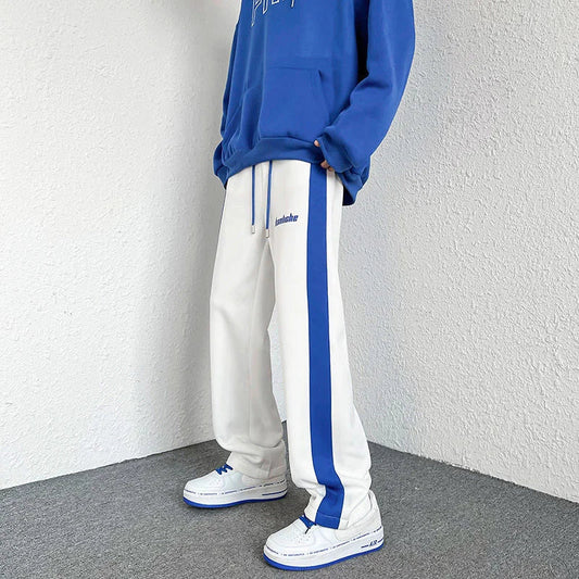 saferido Contrasting Color Stitching Mopping Casual Trousers Men Oversize Sports Loose Pants Printed Letters Straight Wide-leg Sweatpants