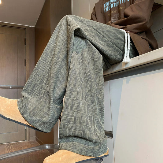 saferido Corduroy Casual Pants For Men Autumn Style American Fit Loose Fit Leg Sweatpants Personality trend Straight Leg Pants