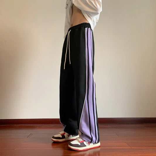 saferido Draped Trousers Straight Sweatpants for Men Autumn and Winter Striped Korean Popular Clothes Big Size Harajuku Man Sports Pants