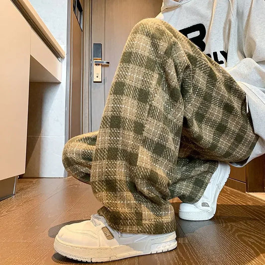 saferido Green Plaid Pants Men Harajuku Winter Wide Leg Checked Trousers Male Oversize Big Size Casual Sweatpants Streetwear 8XL