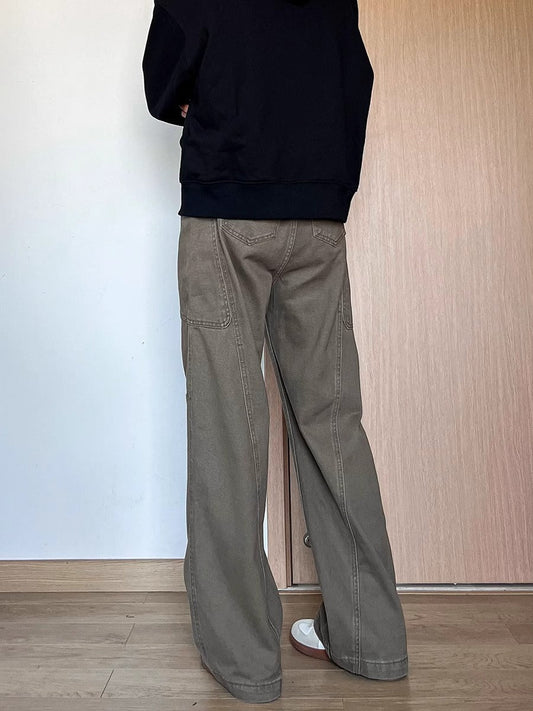 American retro jeans men's Vintage deconstruction design overalls loose straight all-match casual pants ins