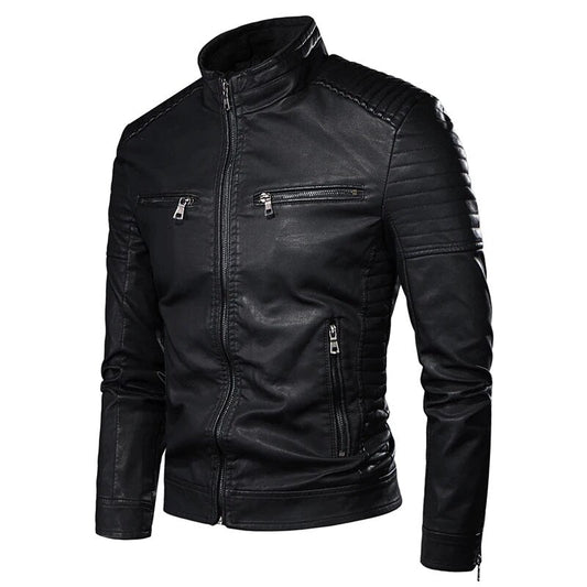 Men's Jacket Fashion Mens Vintage Leather Jackets Casual Men Faux Leather Motorcycle Jackets Biker Zipper Pockets Coats