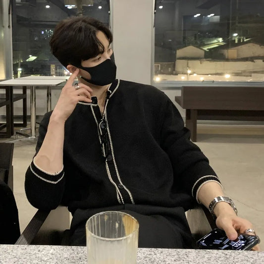 Men's Luxury Knitted Cardigan Sweater Solid Color Long Sleeve Casual Streetwear Patchwork Button-down Vintage Knitwear