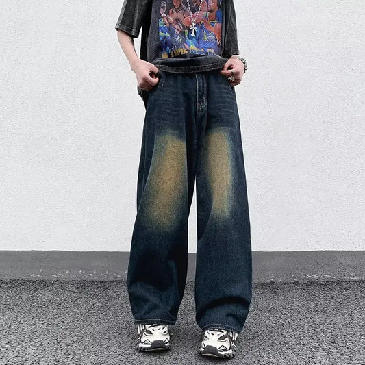 Men's Jeans Korean Version Student Handsome Casual Pants High Street Straight Loose Wide Leg Jeans Vintage Blue Baggy Jeans