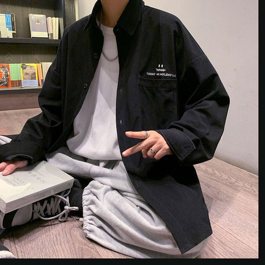 New Men's Casual Shirts Long Sleeve Oversized Vintage Graphic Male Blouses Tops Fashion Spring Clothing