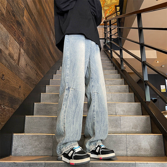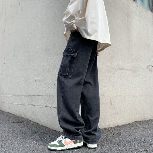 saferido drip outfit men Cityboy American Wide Leg Workwear Jeans Men's Ins Straight Loose Vintage Washed Workwear Trousers