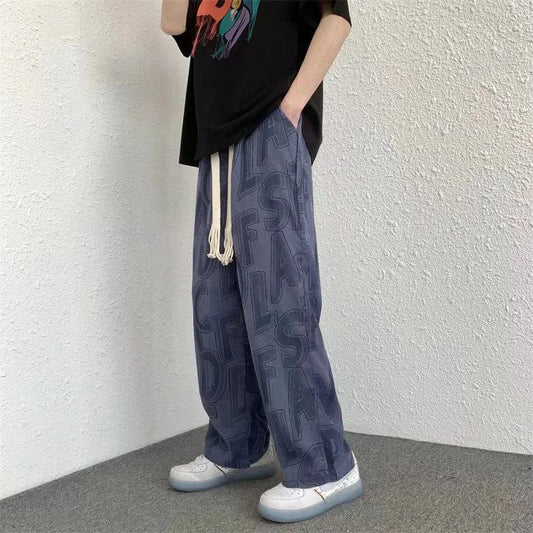 saferido fall mens outfits High Street Vibe Style Vintage Lightning Pattern Machete Jeans Men's American Casual Straight Wide Leg Slimming Skinny Pants