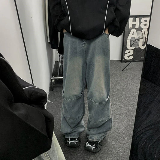 saferido Distressed Vintage Blue Jeans Pants Men Wide-leg Denim Trousers Male Oversize Streetwear Fashion Casual Baggy Straight Jeans