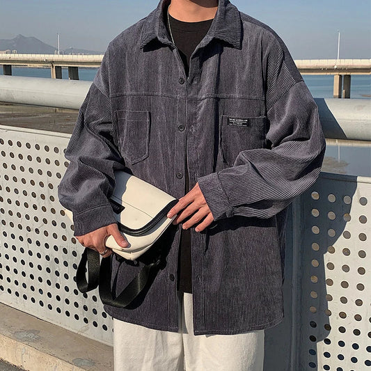 saferido HIP HOP Rocking k Corduroy Men Shirts For Men Clothing Harajuku Black Shirt Korean Style Men Shirt Long Sleeve Vintage Clothes