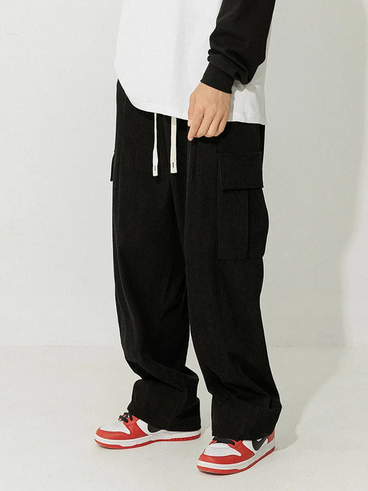saferido Japanese corduroy casual pants for men's autumn and winter vintage loose work clothes with pleated pockets and cuffs design