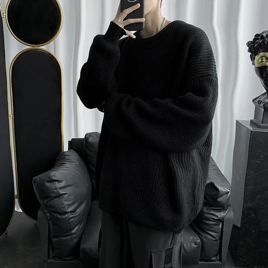 saferido Knitted Sweater Men Autunmn Winter Warm Clothing Korean Fashion Long Sleeves Top Vintage Solid Baggy Pullover Y2K Male Clothes